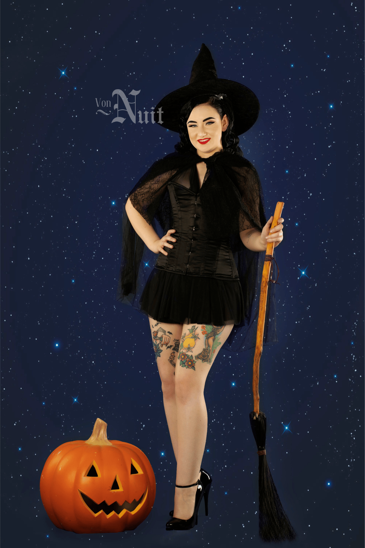 The Bewitched series was shot by Dynamite Dames, hair and makeup by Vivienne Vermouth, featuring black leather Irving Klaw-esque fetish heels and classic retro Halloween props to create a super cute pinup aesthetic.