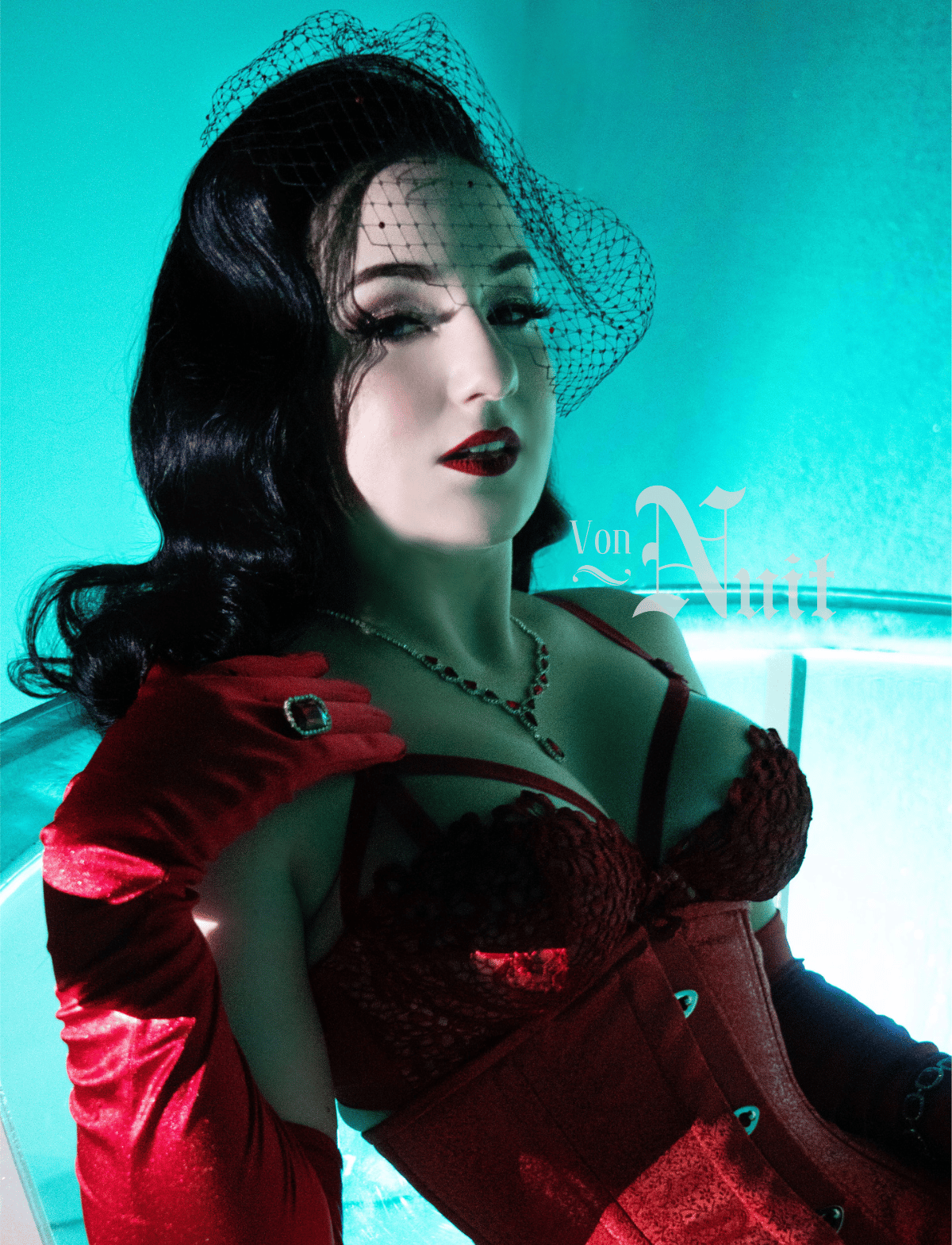 The Martini series was shot by the iconic Jill Rasco (RIP) featuring a fabulous burlesque martini glass, vibrant red lingerie by Dita Von Teese, a luxe satin and marabou robe, and strassed heels made by me. Hair and Makeup by Ladonna Stein.